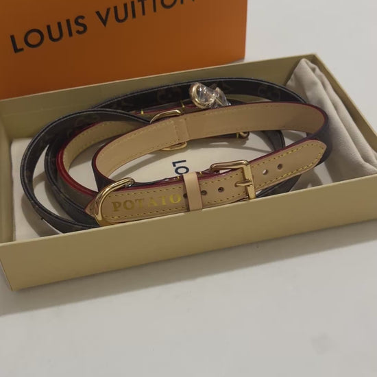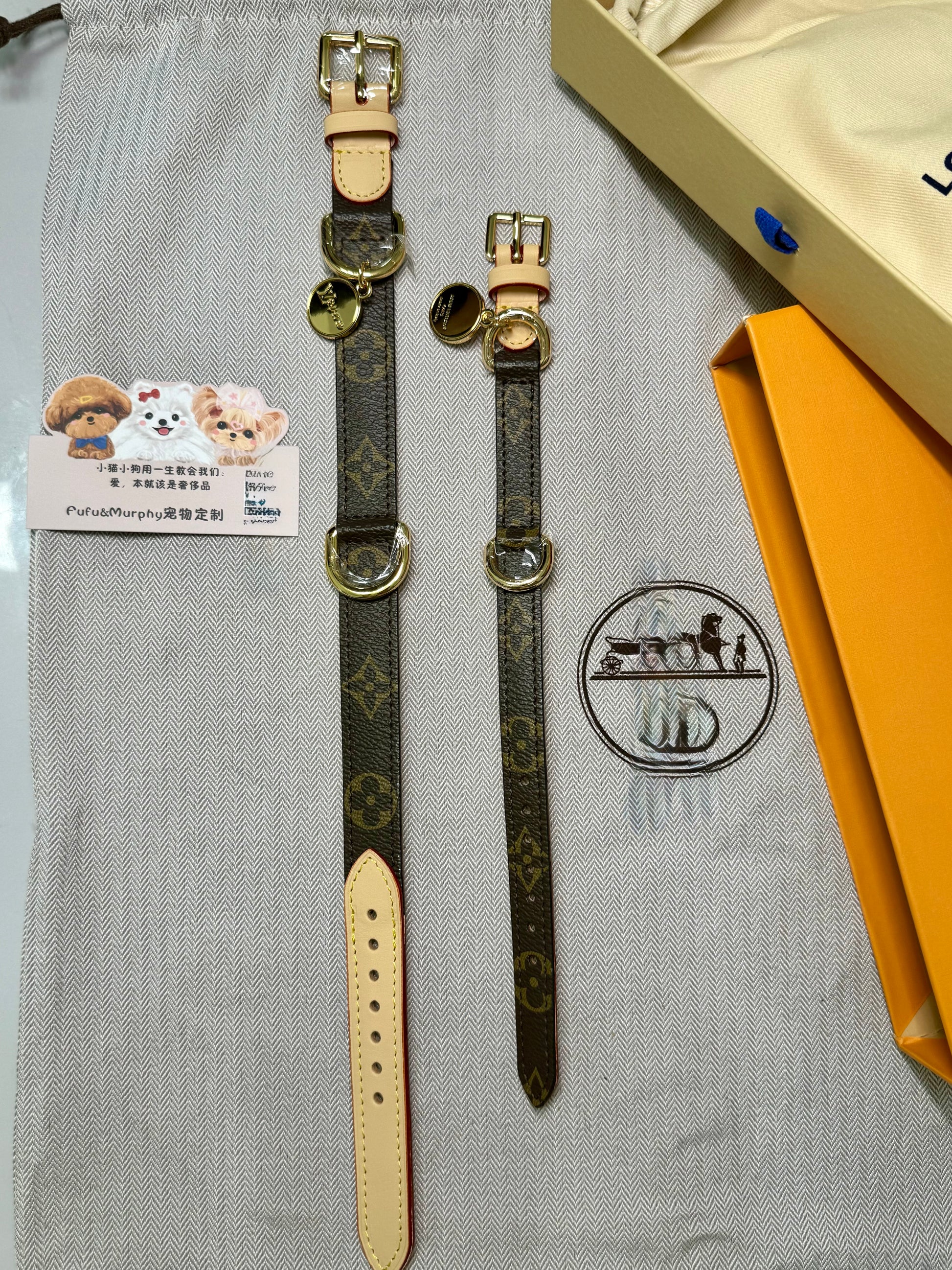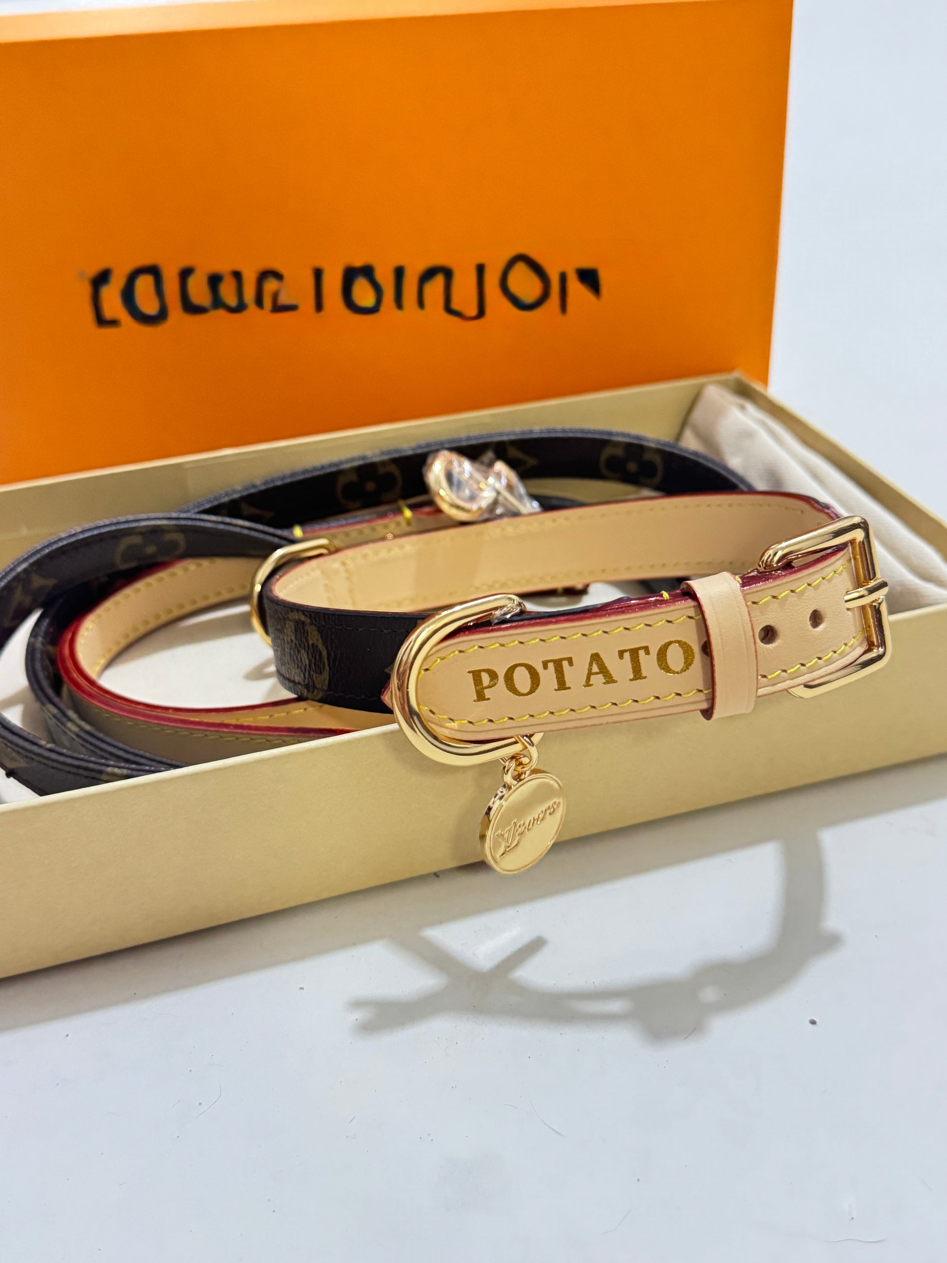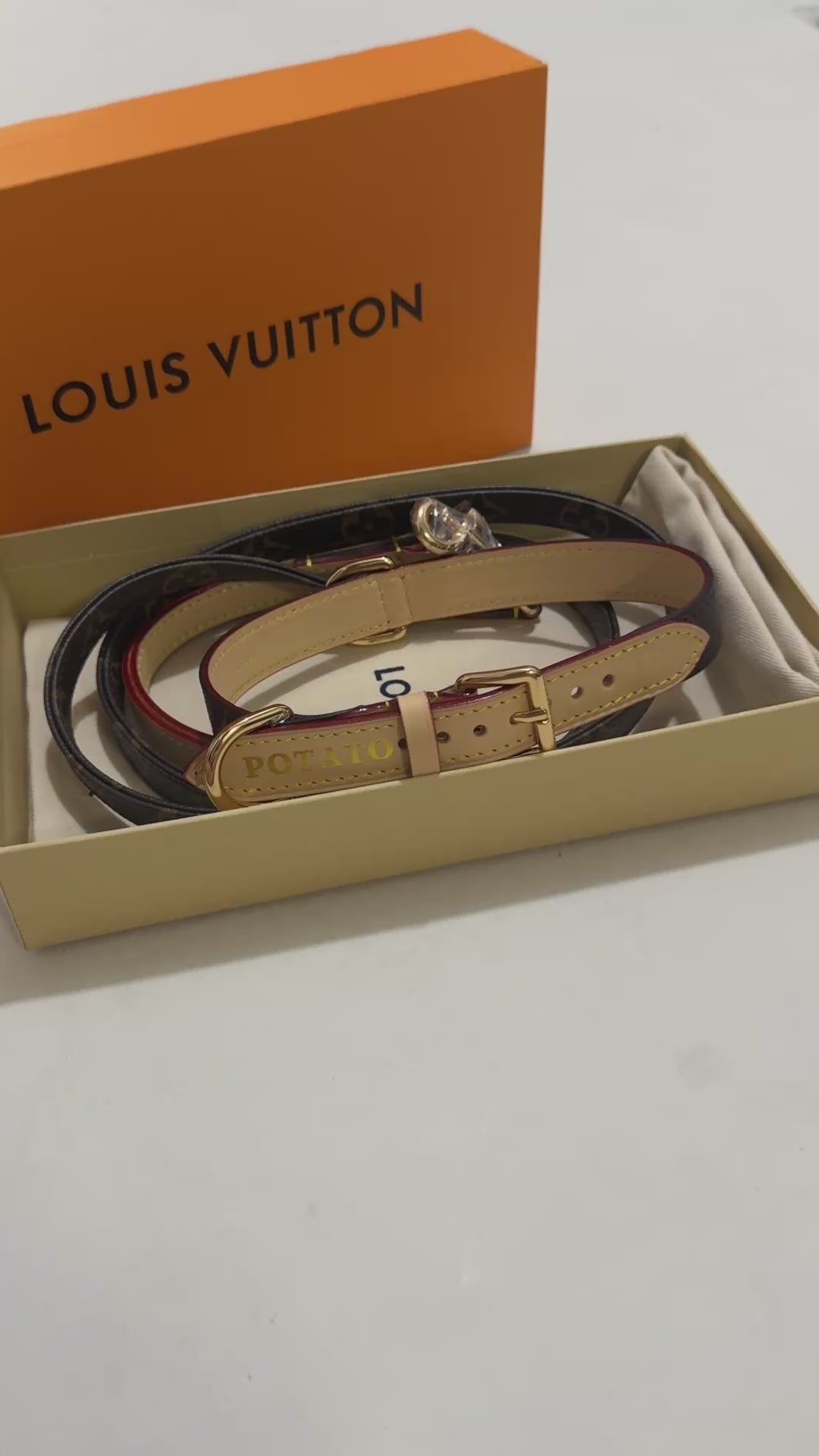 Introducing this high-end collar and leash set, designed with aesthetics inspired by the timeless style of classic luxury accessories. We have utilized exquisite craftsmanship and meticulous attention to detail to create a companion set featuring a distinct, iconic patterned aesthetic.
