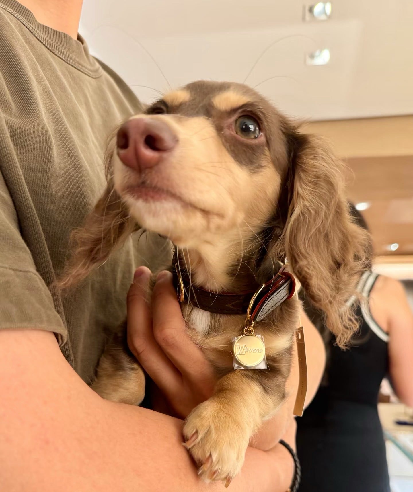 • Exclusive Customization: Enjoy our bespoke hot stamping service. You can add up to FIVE letters (such as initials or a short name) to the collar, finished with a luxurious gold foil stamp.